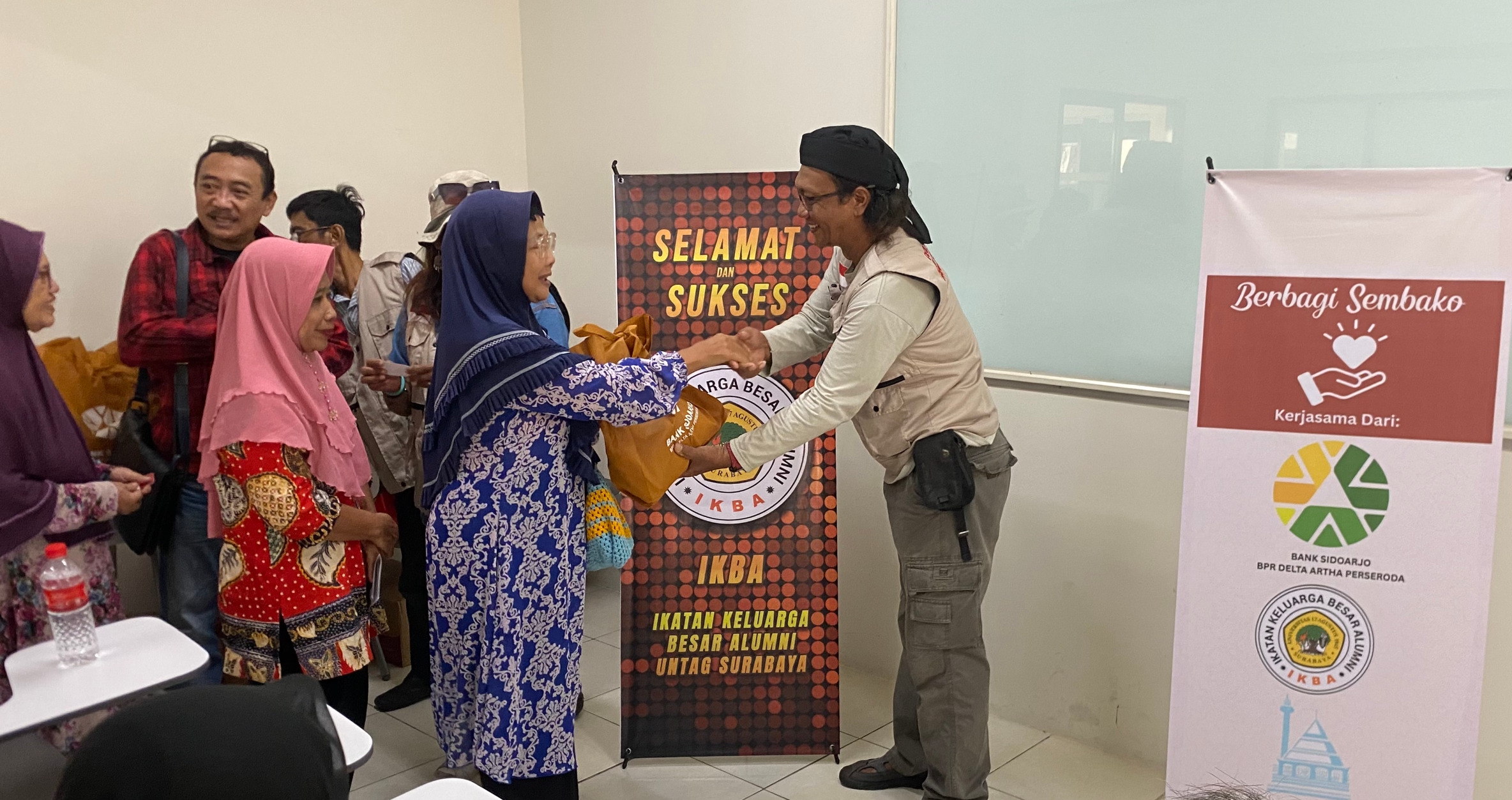 Kegiatan ini terselenggara atas kolaborasi IKBA Untag Surabaya bersama Bank Delta Artha Sidoarjo dan Masjid Baitul Fikri Untag Surabaya. Puluhan warga hadir sebagai penerima manfaat dalam suasana yang hangat, tertib, dan penuh kebersamaan.